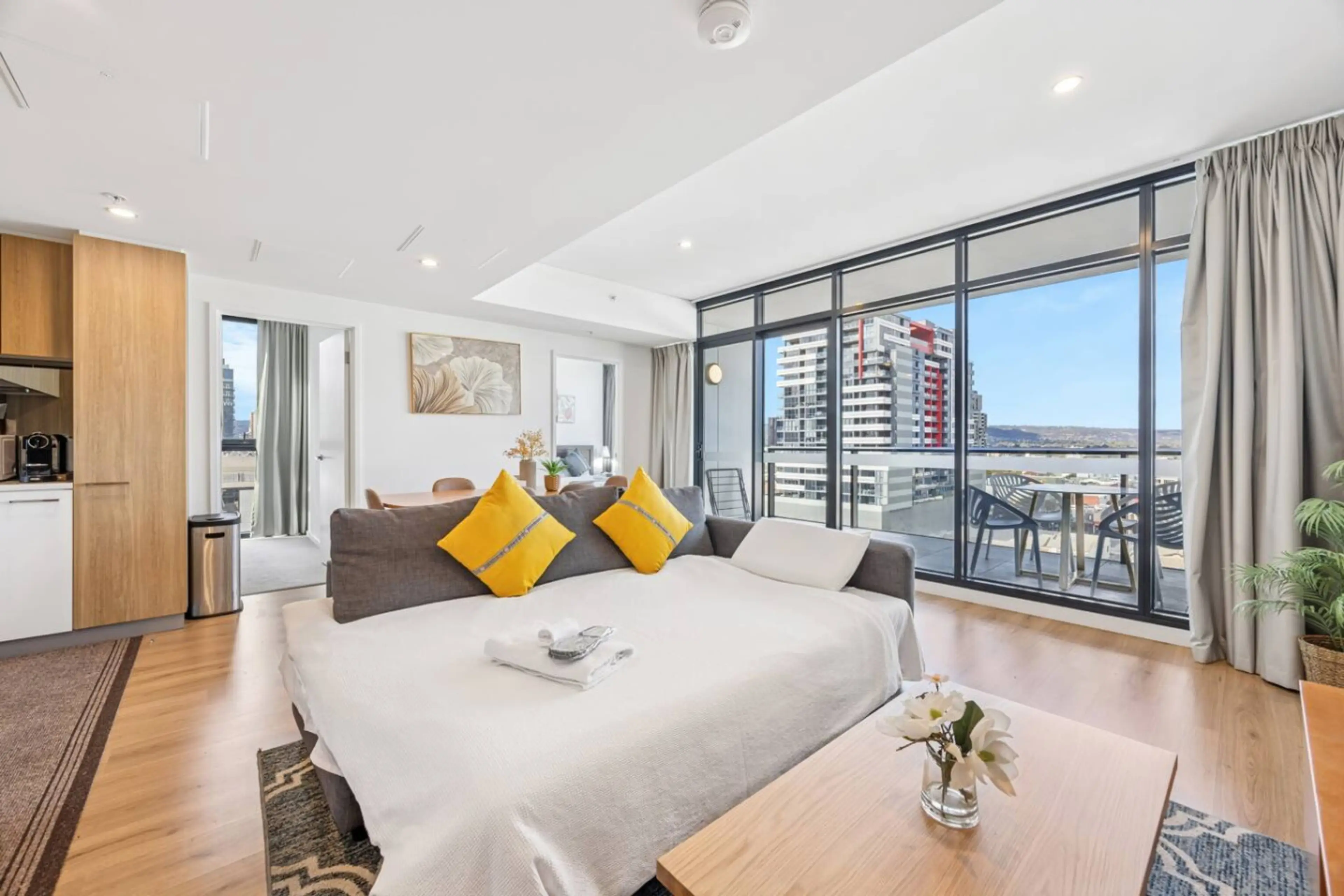 This beautiful West Franklin Apartment is located in the Adelaide CBD, just a short walk from Central Market, Chinatown, Royal Hospital, and Convention Centre. Perfect for families or groups, it comfortably accommodates up to 7 guests with three spacious bedrooms, two full bathrooms, a fully equippe...