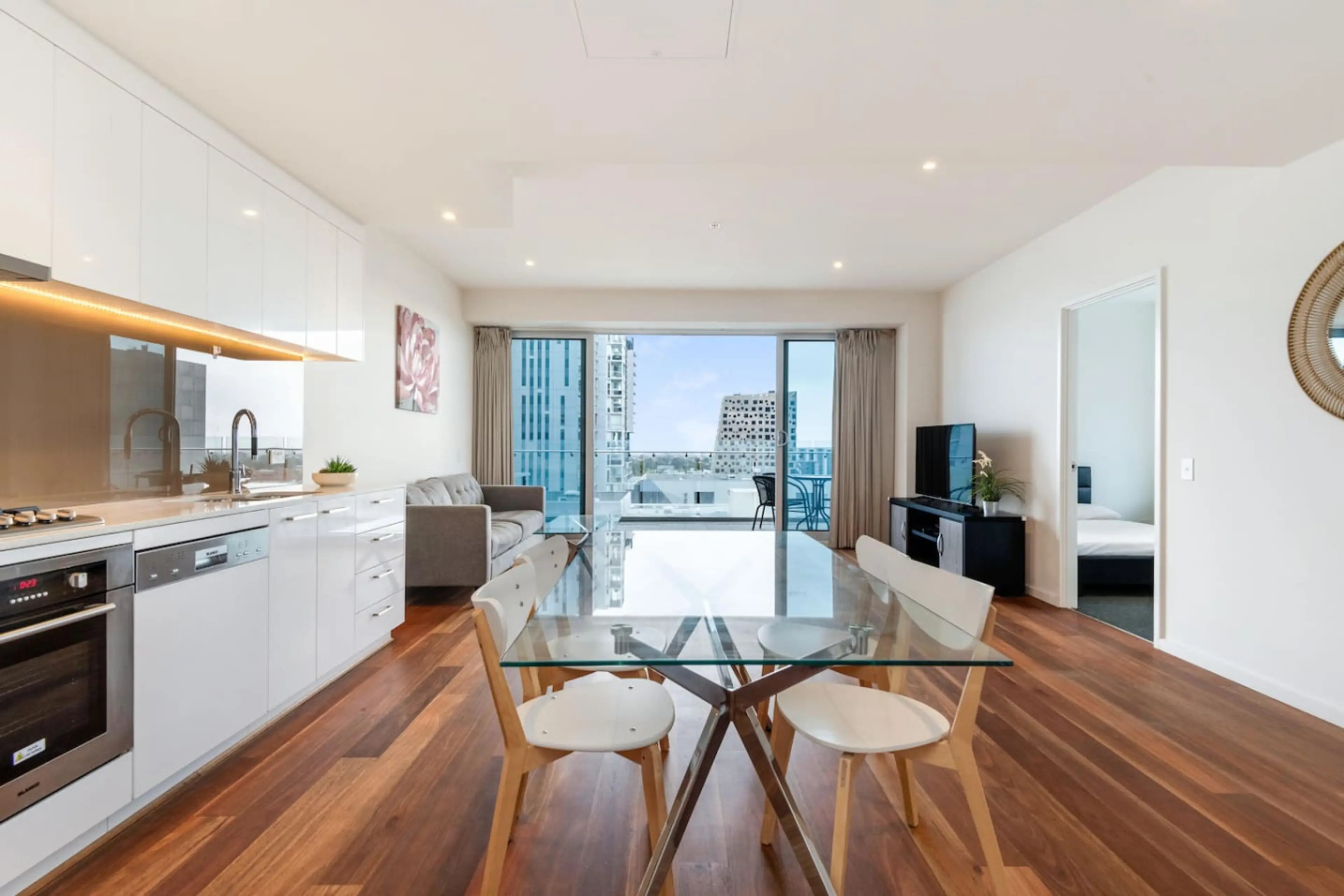 This beautiful 3-bedroom apartment is located in Adelaide's CBD on Morphett Street. It is close to ✔IGA Supermarket, ✔Central Market Chinatown, ✔Victoria Square, ✔Royal Hospital, ✔Convention Centre, and ✔Oval. It can accommodate up to 7 guests and has three spacious bedrooms, a sofa bed, two complet...